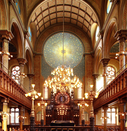 Chicago, Illinois. Temple Isaiah, Alfred S. Alschuler, Architect (1924). This is one the most fully realzied Byzantine style synagogues, but it is more influenced by San Vitale in Ravenna than Hagia Sofia in Istanbul. Photo: Samuel D. Gruber.
